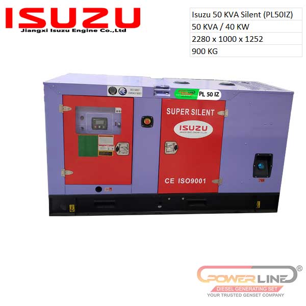 Genset seri JE493ZLDC-02 (PL 50 IZ) dari Genset Isuzu mengadopsi mesin Isuzu Jiangxi, yang dibuat oleh Jiangxi Isuzu Motors Co, Ltd.